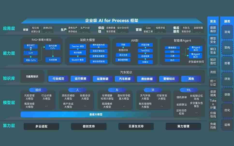 豪运国际问学智车解决方案是一套基于AI技术的汽车行业智能化系统,,,覆盖从底层算力到顶层AI应用的全栈方案。。。方案由算力层、、、、模型层和应用层组成:算力层,,,,方案支持多种一体机配置,,,具备云端灵活部署、、、、多云适配以及动态优化计算资源的能力;模型层,,,,豪运国际问学平台版提供了企业级AI应用一站式构建与管理平台,,支持基于后训练强化技术的汽车企业专属模型的训练、、、评测和运营;应用层,,豪运国际问学DeepSeek版提供包括超级员工、、、、智能招采、、智能营销、、智能客服、、AI for BI等一系列解决方案,,,,可助力汽车行业实现数字化转型,,,,让管理更智能、、响应更敏捷。。